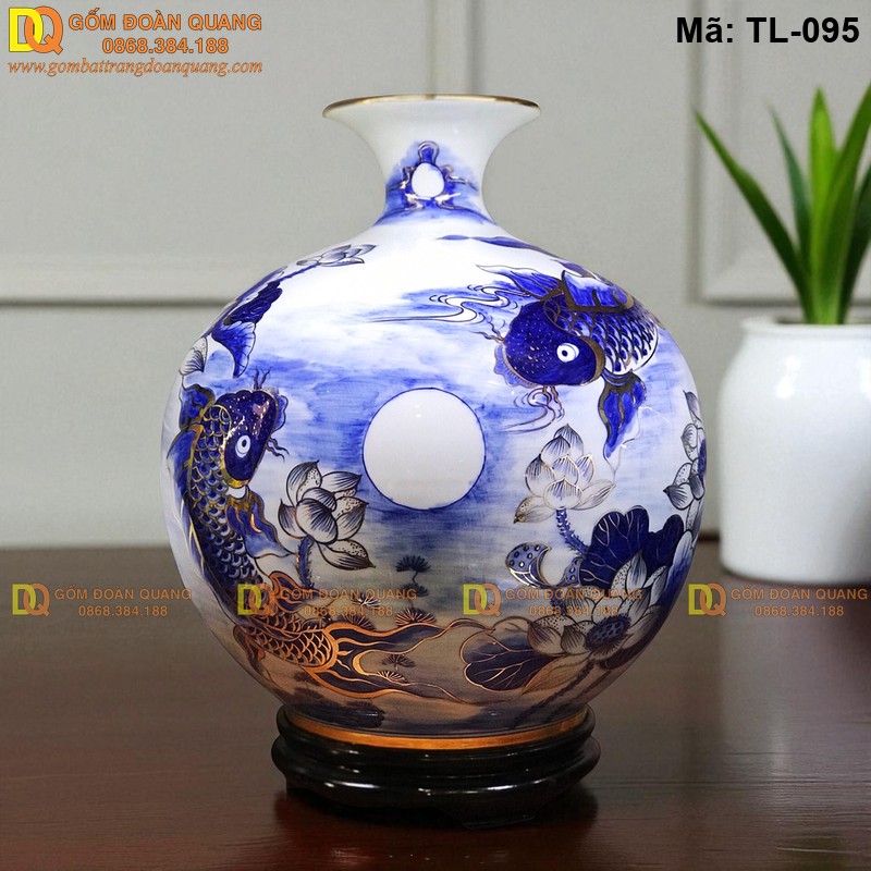 Bình TL-095 được chế tác thủ công từ đất sét tinh tuyển của làng gốm Bát Tràng, trải qua quy trình nung lửa khắt khe, tạo nên một sản phẩm vừa bền chắc vừa mang giá trị phong thủy cao. Kiểu dáng phình to – miệng loe theo đúng chuẩn hút tài lộc cổ truyền.