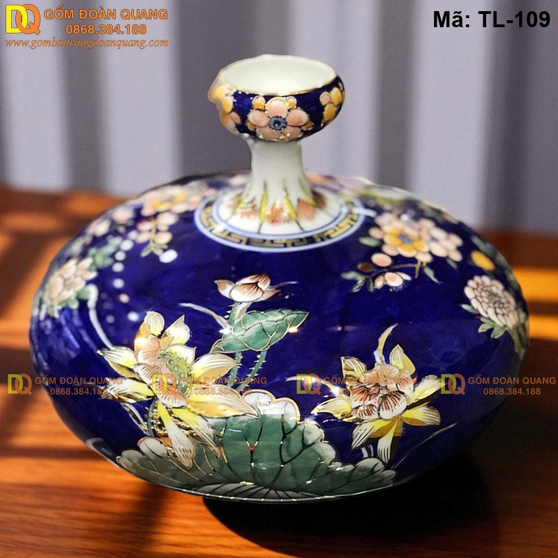 Bình hút tài lộc cỡ nhỏ TL-109 là lựa chọn tinh tế cho những ai yêu thích sự gọn gàng nhưng vẫn mong cầu tài khí dồi dào. Với dáng bình miệng loe – bụng phình – đáy thu nhỏ, sản phẩm giữ nguyên hình thế chuẩn phong thủy để thu – giữ – dẫn lộc vào nhà.