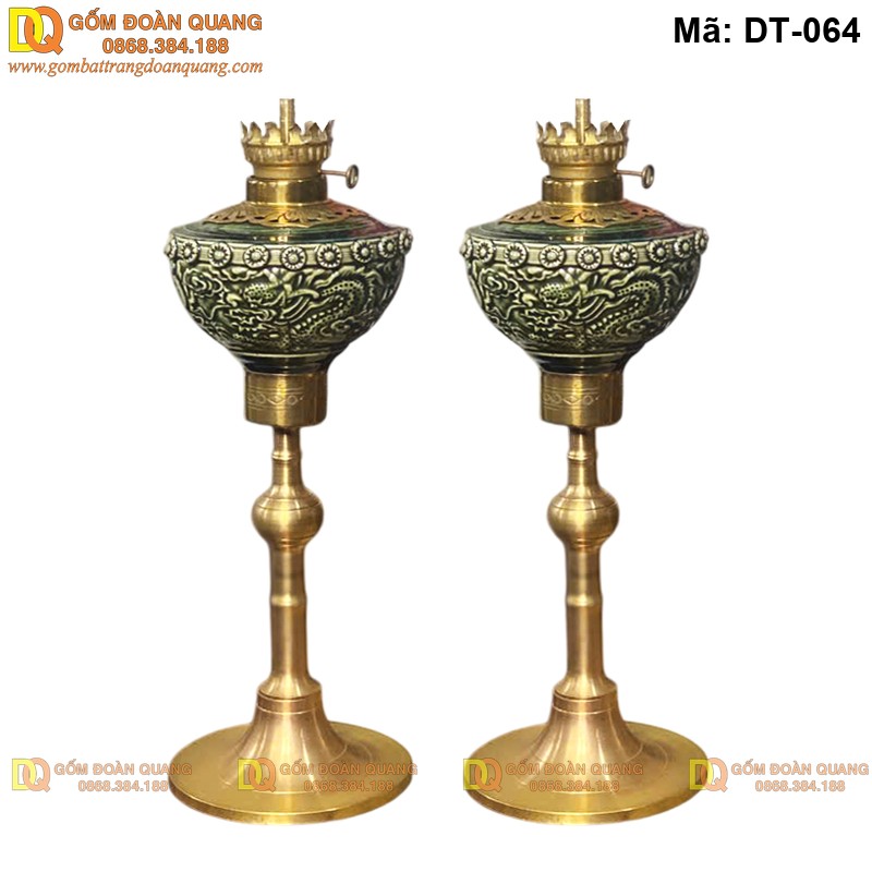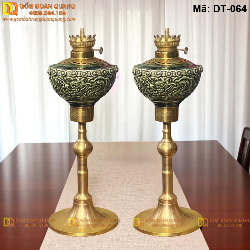 Đèn bàn thờ khắc nổi đẹp gốm Bát Tràng mã DT-064 dùng cho bàn thờ gia tiên và bàn thờ phật