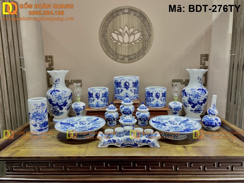 Đồ thờ Bát Tràng bộ men lam mã BDT-276TY