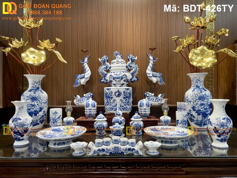 Đồ thờ Bát Tràng cao cấp men lam cổ mã BDT-426TY